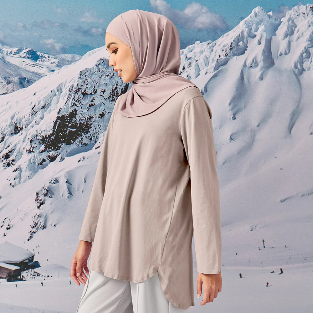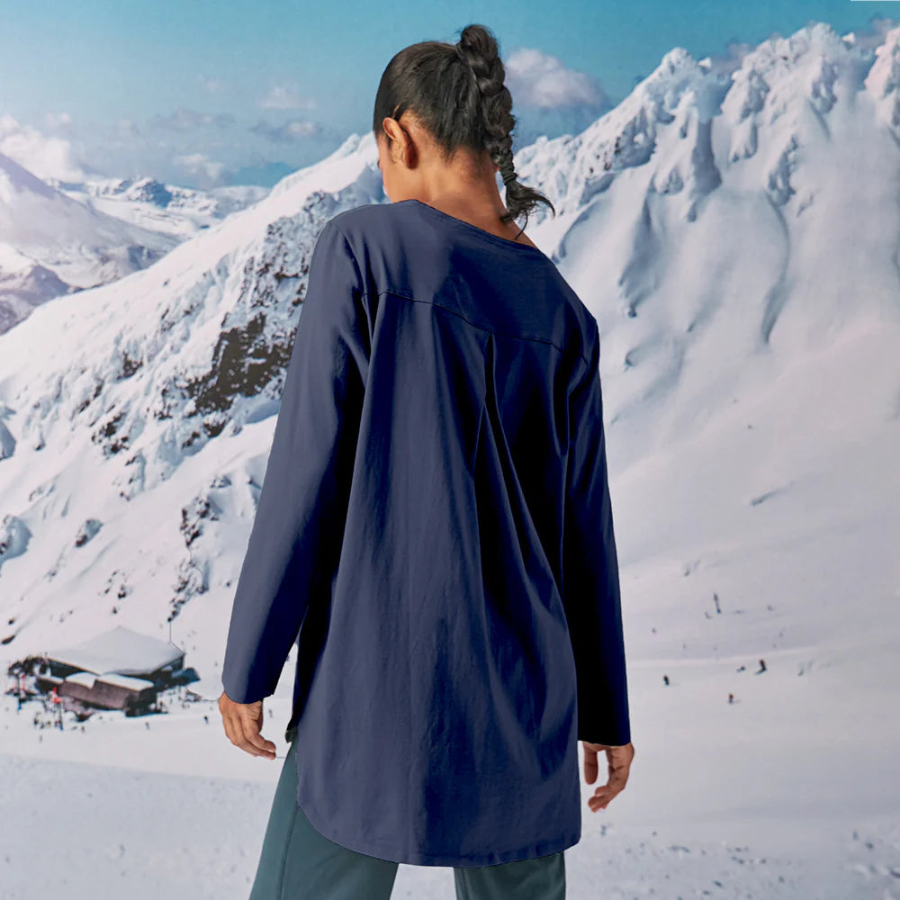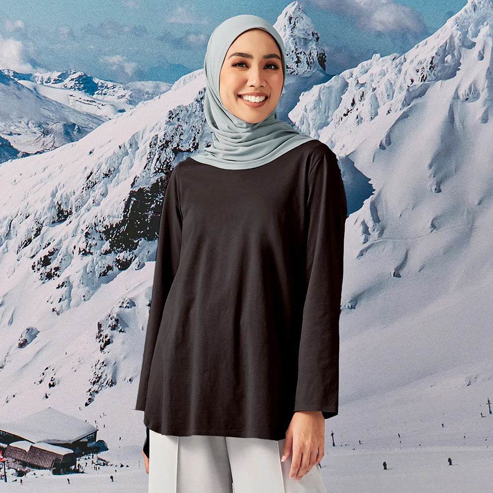 Never out of style with the Back Pleated Top. This signature round neck piece gives the extra coverage you need with its back pleated design that is long and elegant.