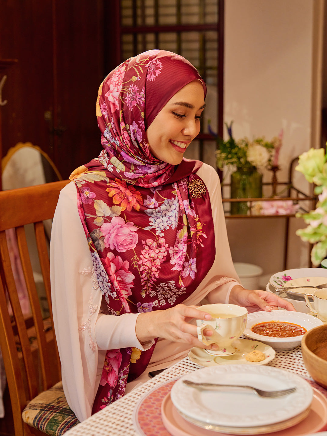 Layered details that recall busy Eid tables, delicate decor taken out once a year, and florals that feel like they’ve always been part of the home. This year, TudungPeople’s Eid collections celebrate the warmth of togetherness. A little nostalgic, a little playful, and full of heart. A quiet nod to the past, reimagined for today, and made for moments shared with the people who feel like home.