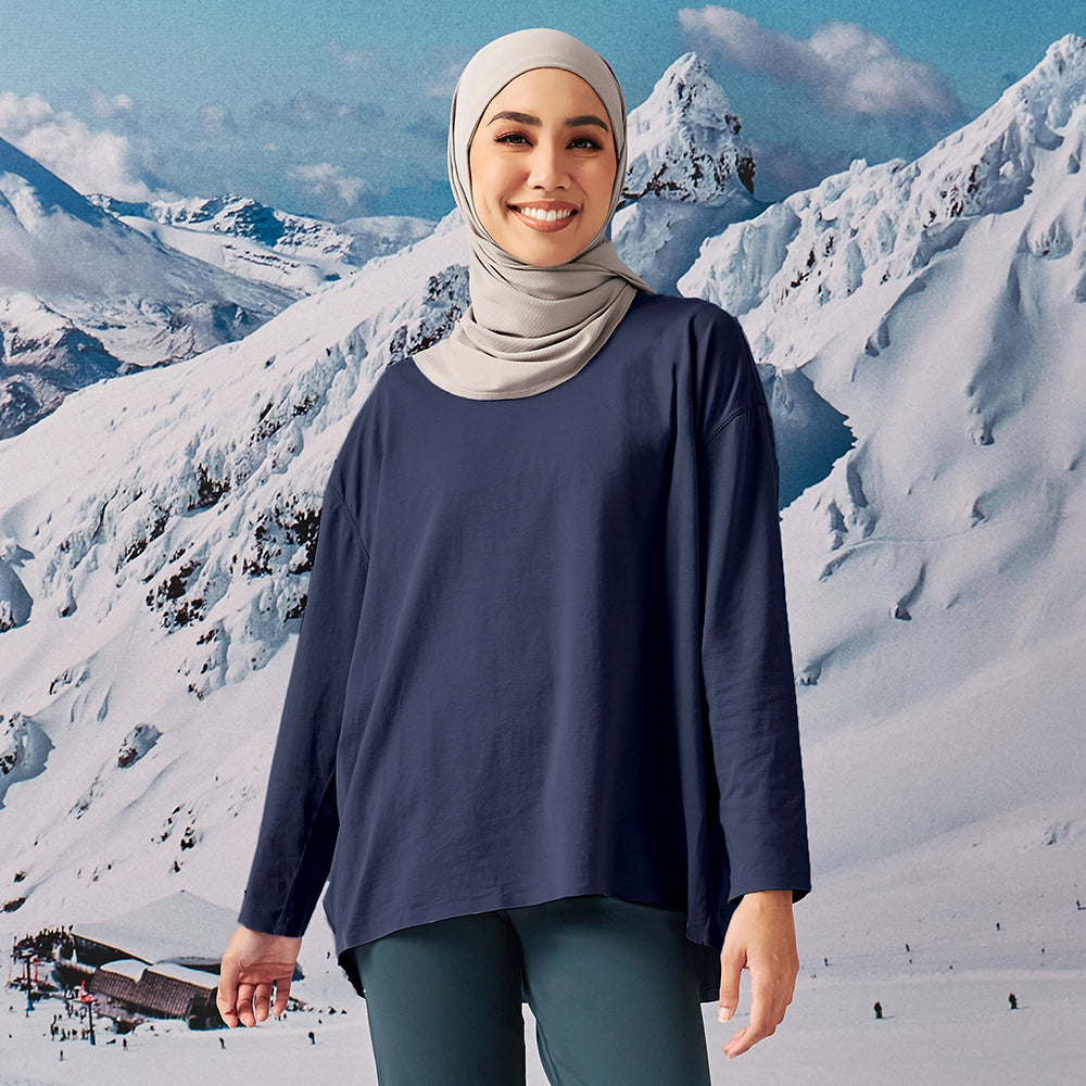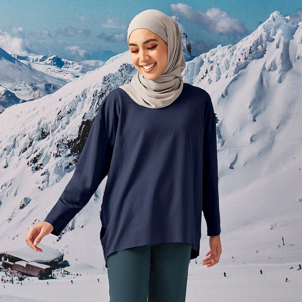 A loose-fit drop shoulder silhouette. The high-low design gives extra coverage for the back area. Go for this baggy style for a more laid-back look!
